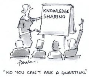 - Lots of managers need to be re-educated away from a knowledge is power mindset and must start to learn to trust people.