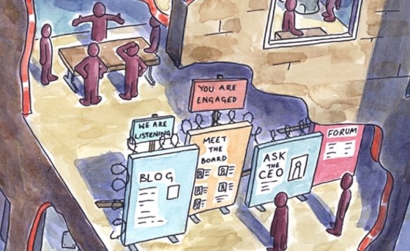 This (obviously) is a bit of a parody of a real life situation I heard about. Those involved represent a kind of staff engagement ‘anti-matter’. They were struggling to justify yet another failed initiative and ended up blaming the staff for their lack of cognitive ability. The failure (in their eyes) was on the part of the ‘dumb’ employees, to understand and implement the clever ideas that were being thrust upon them. The ‘draw a picture’ discussion was actually just a diversion to avoid confronting the real problem, a lack of engagement with staff around the ‘clever new initiative’.