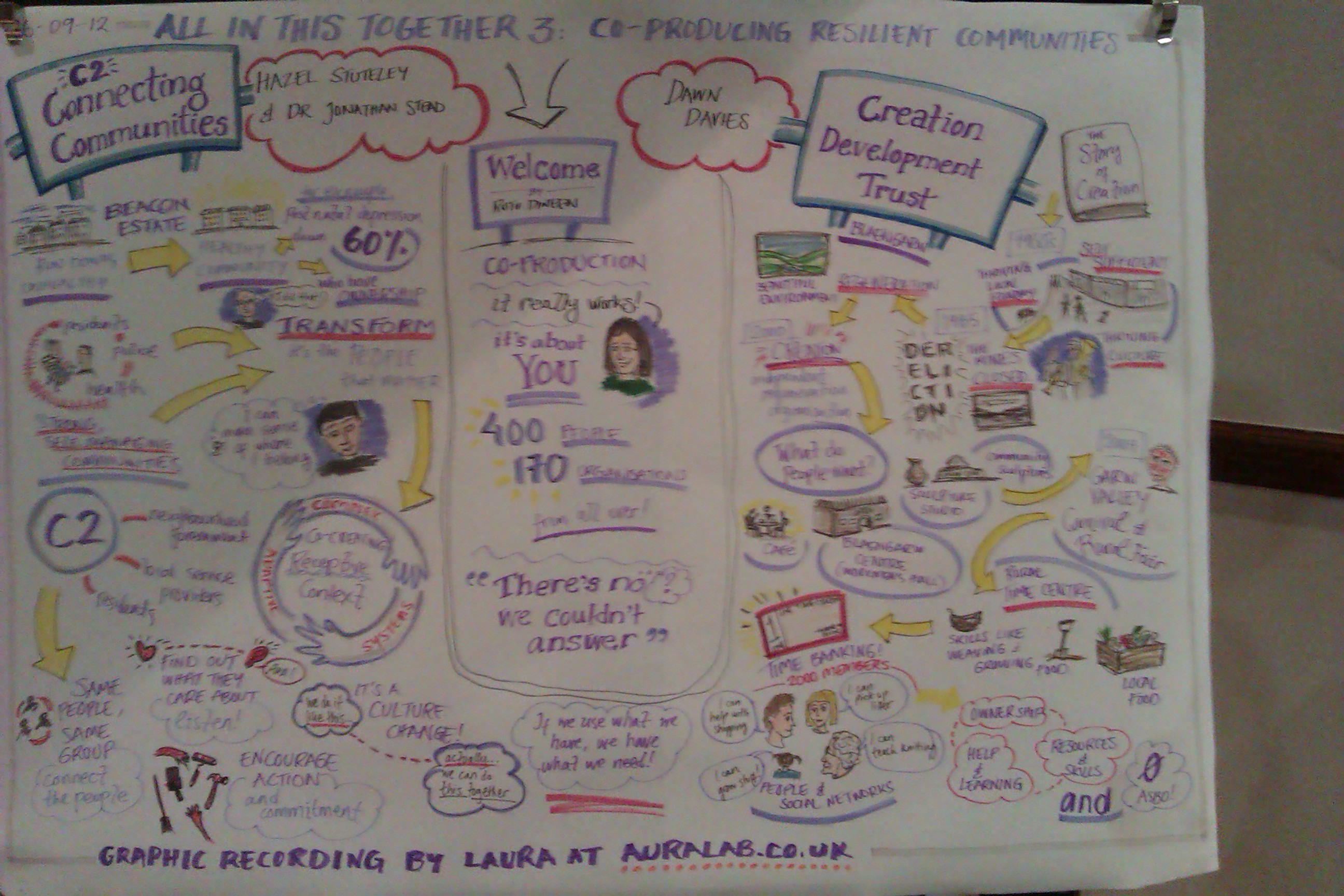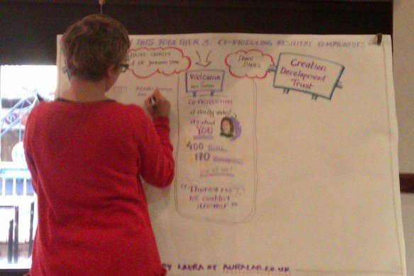 These pictures are by Laura Sorvala (@_auralab) of the work she did at the All in this Together, Co-production Conference held in Cardiff last week. The image was developed over about 60mins and 4 separate speakers.