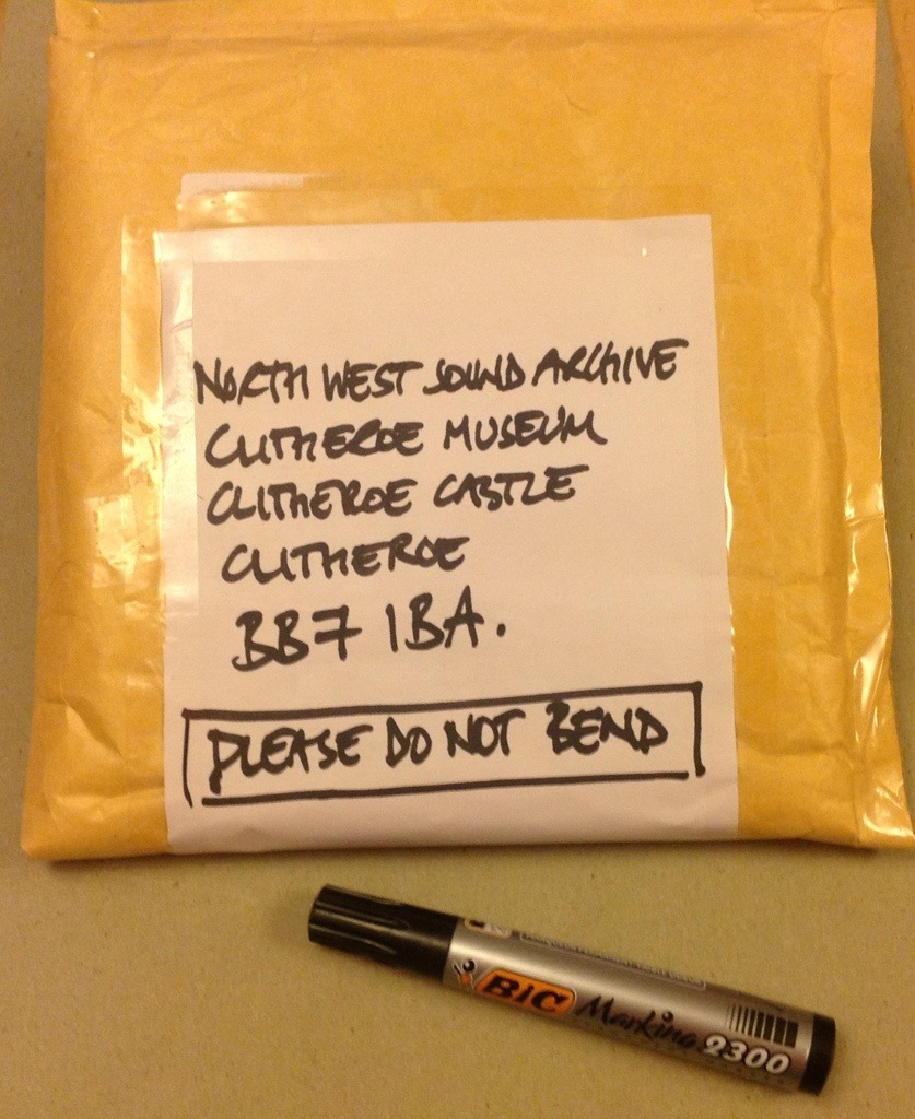 The record is on its way to the North West Sound Archive in Clitheroe Castle Museum. Thanks to the internet and Twitter I’ve spoken to people at the archive and they would like the recording as they don’t have it. I hope it survives the journey (it is very well packed – see the picture) and it is playable.