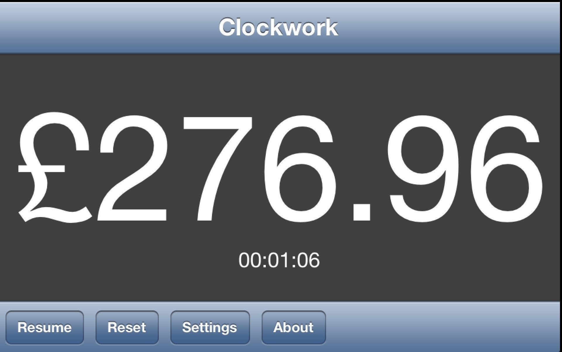 Clockwork Meetings This afternoon Ed Bullock from Halton Housing Trust came up with this free app on iTunes. It is just as easy to uses as Meeting Ticker, you add the number of attendees, hourly salary cost and press start. The big difference is the ability to set an audible ‘click’ to make a noise at set intervals. Just what you need in case you forget the fact there is ‘money on the clock’.