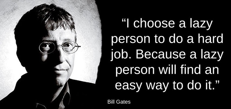 - There might be something in the Bill Gates quote, ‘give a difficult job to a lazy person’. Maybe we don’t appreciate the ‘special skills’ of ‘lazy’ people?