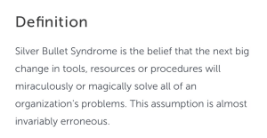 Two things make me wonder about this; in many situations people actually want the ‘Silver Bullet’ and secondly, this is despite the fact they know that other silver bullets haven’t worked previously. Stick with me for a moment while I try and explain some of my thinking.