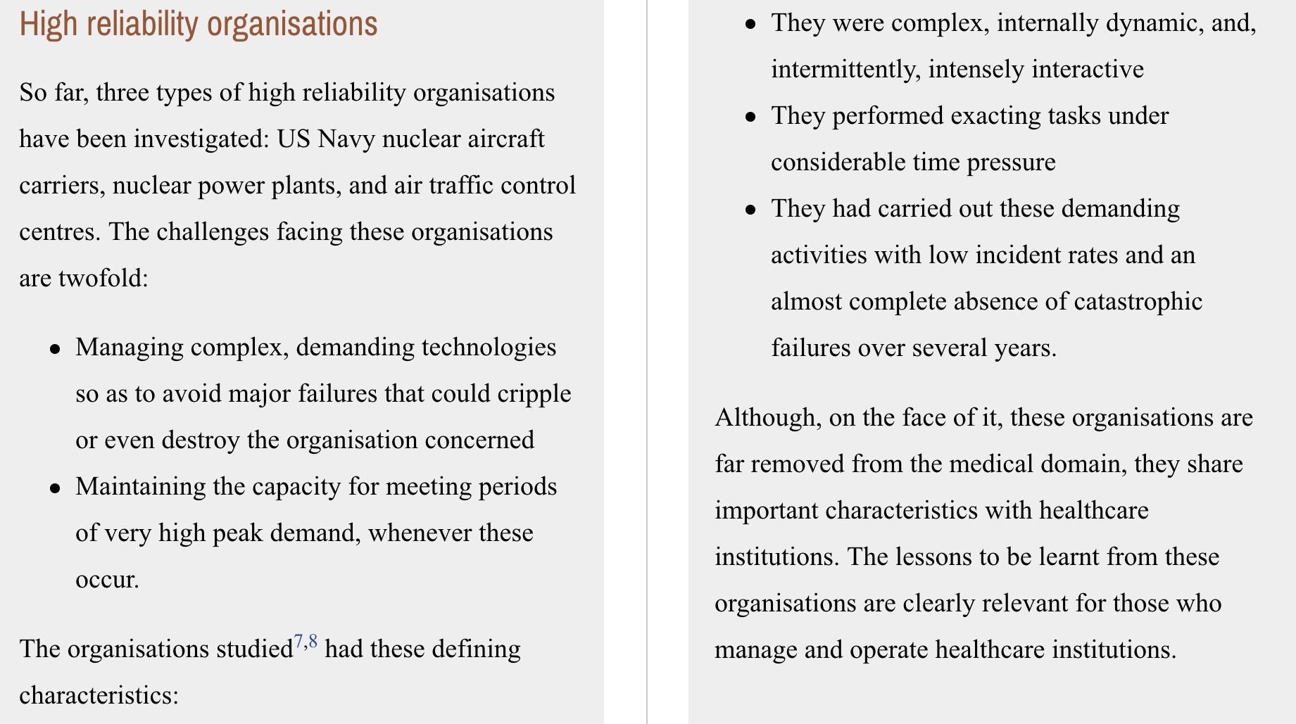 It’s worth a look at the paper’s summary of research into failure in high reliability organisations (below) and reflecting, do these organisations have a Person Approach or Systems Approach to failure? Would failure be seen as ‘blameless’ or ‘blameworthy’?