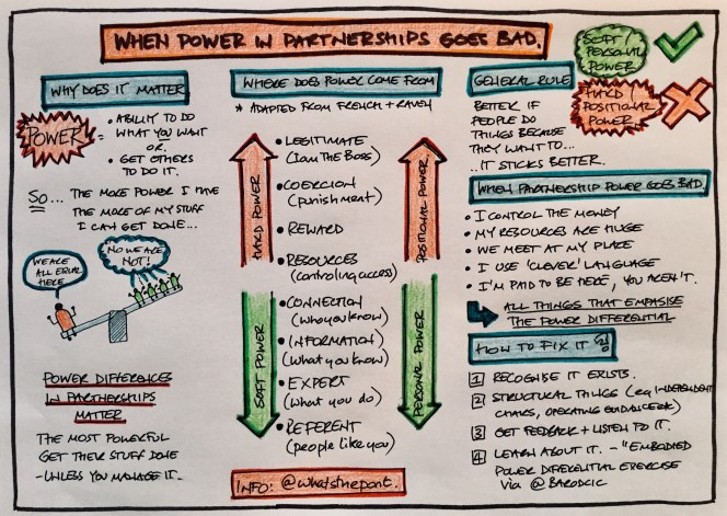 There are no easy answers here, but recognising that power is a ‘thing’ in partnerships, and that it can cause difficulties is a starting point.