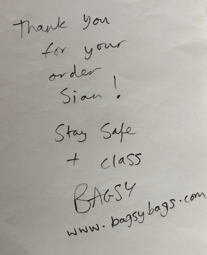 What I really love about BAGSY was the personal note sent with the T-Shirts we ordered during the peak of the COVID-19 lock-down. Nobody was getting out and the parcel arrived with a lovely hand written note*. I’ve never met BAGSY, and the note brought a huge smile to my face.