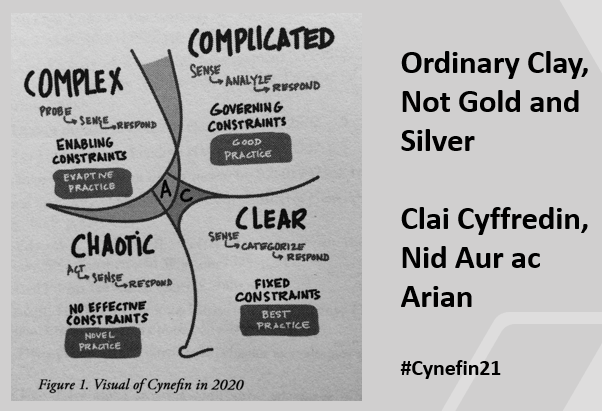 So, ‘ordinary clay, not gold and silver’, ‘clai cyffredin nid aur ac arian’ is very Welsh sentiment, for a very Welsh Framework. Happy 21st Birthday Cynefin.