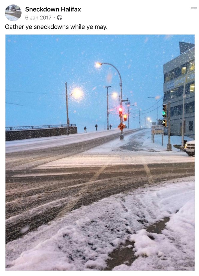 - Never Waste a Crisis. In the UK we tend to go into a panic whenever it snows heavily. I’m wondering if we should look upon snow as a ‘sustainable transport opportunity’. Using the advice from Dave Snowden, “In a crisis, you should always deploy an innovation team alongside the business recovery teams…to capture the novel practice” maybe people like Sustrans (UK Sustainable Transport Organisation) could deploy #SneckdownSquads? It looks like the clever Canadians have already done this and there’s a brilliant site on Facebook and Twitter called Sneckdown Halifax @sneckdownhfx. Thanks very much to Ben Wedge for letting me use some of his images. I particularly enjoy “Gather ye sneckdowns while ye may”, which is at the end of this post.