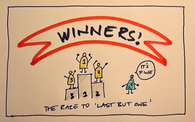 Using the Olympic 100m sprint example, 7th place (last but one) might be a fine place to be. You aren’t going to attract any attention as a winner or almost winner (1st, 2nd, 3rd) but you aren’t last either. Still in the race with the benefits that brings, but without any of the risks of being first or attracting any attention. And that might be just fine…