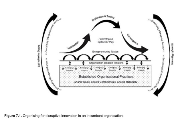 Foucault’s Heterotopic Spaces. I was introduced to this idea by Innovation Specialist, Dr Lisa Whitelaw at an Ideas UK conference. You can read Lisa’s PhD thesis here; Organising for disruptive innovation: everyday entrepreneuring efforts at an incumbent technology company The image below is from the thesis and identifies ‘heterotopian spaces for play’.
