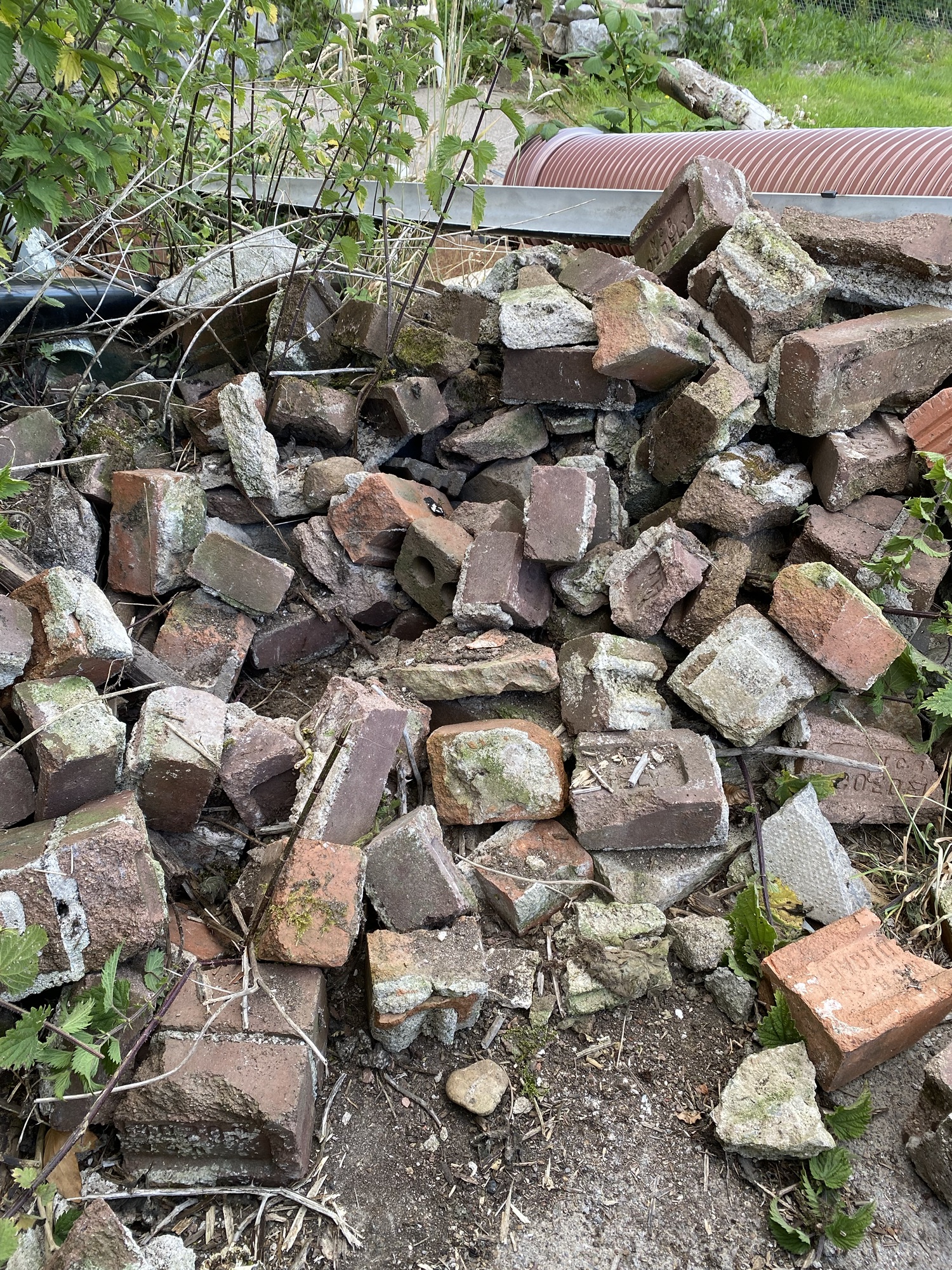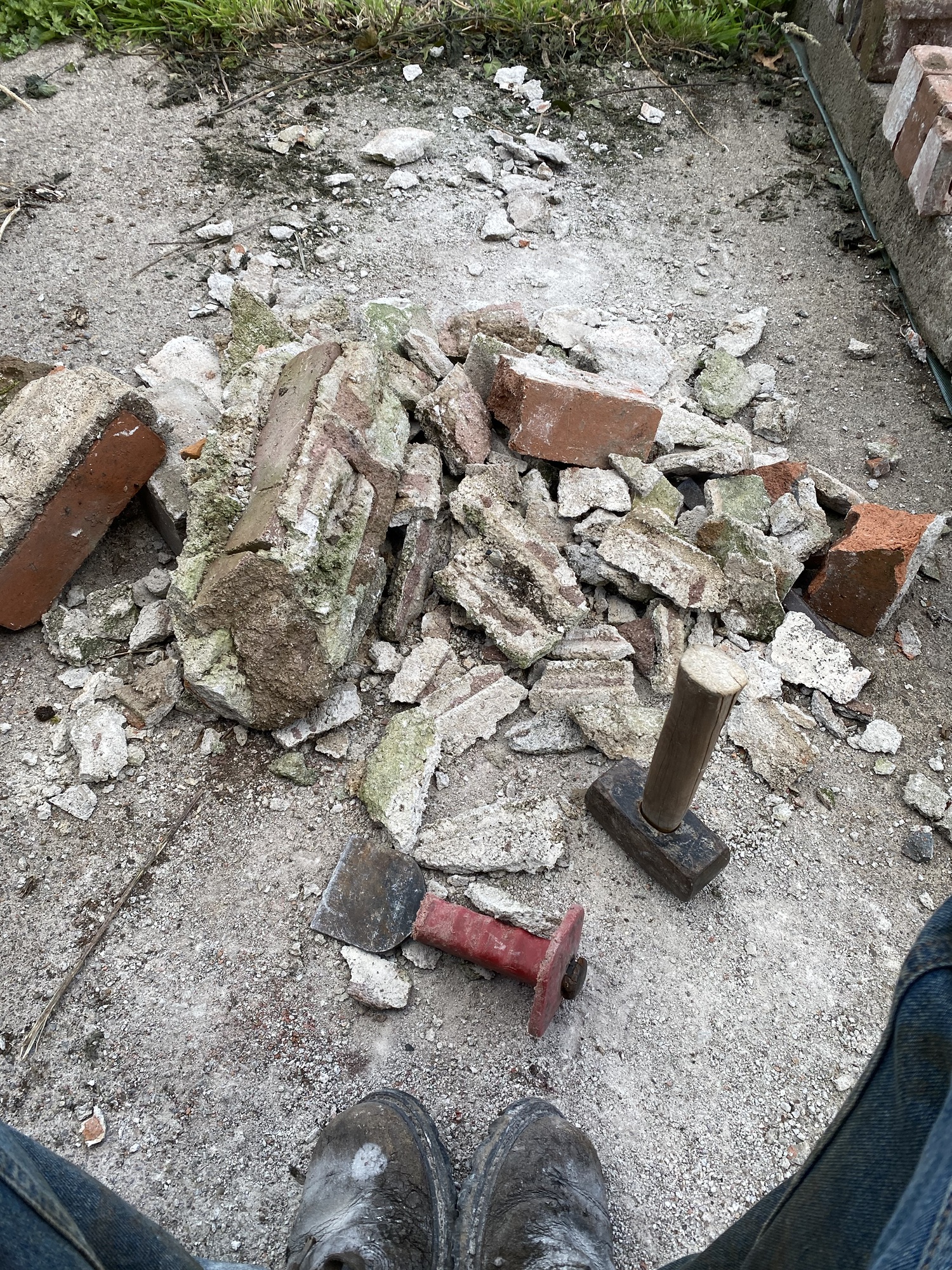 I’ve been reclaiming some bricks from a pile of debris I dug up from the base of an old shed in the garden. It’s been fun.
