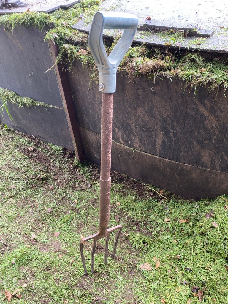 Here’s some more pictures of the Bushfix Fork. A monstrosity of a garden implement along with the compost bins it lives with.