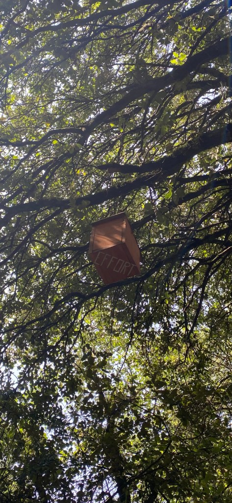A small chalk board fixed about 3m up in a tree. Somewhere in the Beechwood’s around Fontaine de Roland (I think).