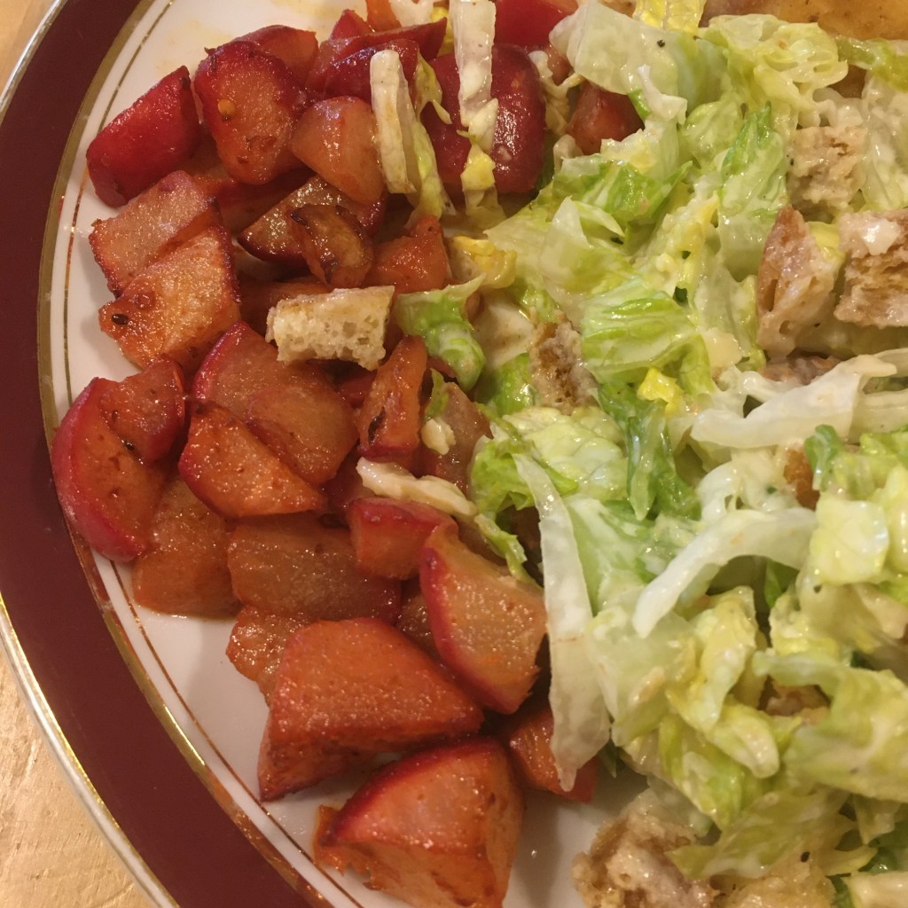 I’m not much of a foodie, so here’s a link to the description of how Caesar Salad was invented in 1924. “A Caesar salad is a salad of romaine lettuce and croutons dressed with parmesan cheese, lemon juice, olive oil, egg, Worcestershire sauce, and black pepper”.