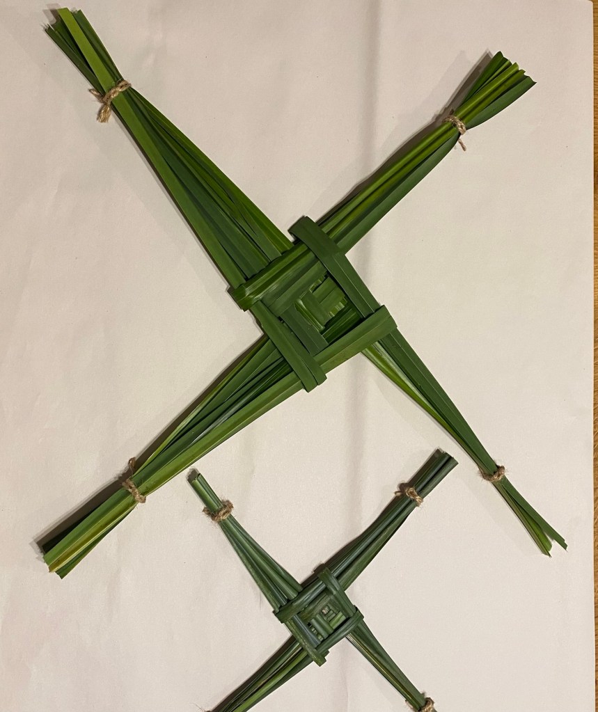 There’s a ton of things to know about Saint Brigid of Kildare c.452 – c.525. But I’d like to focus on St Brigid’s cross, woven from rushes it is traditionally made in the evening of the 1st February and hung on your door for St Brigid to bless as she passes through.